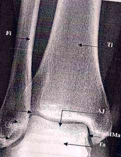 (Fi= Fibula, Ti=tibia; Ta= talus; Aj= ankle joint; LMa= Lateral Malleolus; MMa= Medial malleolus; MaF= malleolar fossa; DtIfI= distal tibiofibular joint)